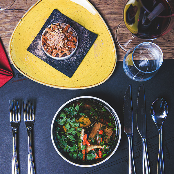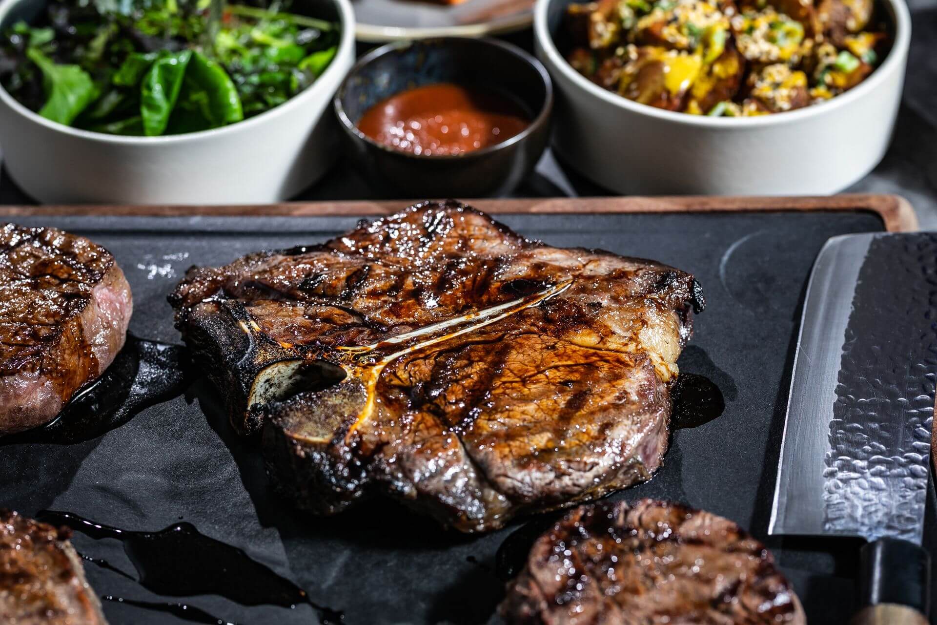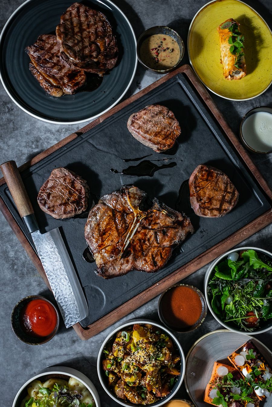 Steak kínálatunk több szempontból is különleges és egyedi. A brazil, argentin, uruguayi és a legmagasabb minősítésű USA marha mellett komoly teret adunk a legjobb hazai tenyésztőknek is, akiktől blonde, charolais és angus fajtákat vásárolunk. Ezeket saját, speciálisan épített kamránkban és Dry Ager szekrényünkben 60 napig szárazon érlelünk, mellyel a húsok páratlanul ízletesek és omlósak lesznek. Az éttermünk számára egyedileg gyártott faszenes grillen készítjük el a steak bármely változatát. Tesszük mindezt Vendégeink szeme előtt különleges, repülőtéri irányítótorony látványkonyhánkban.